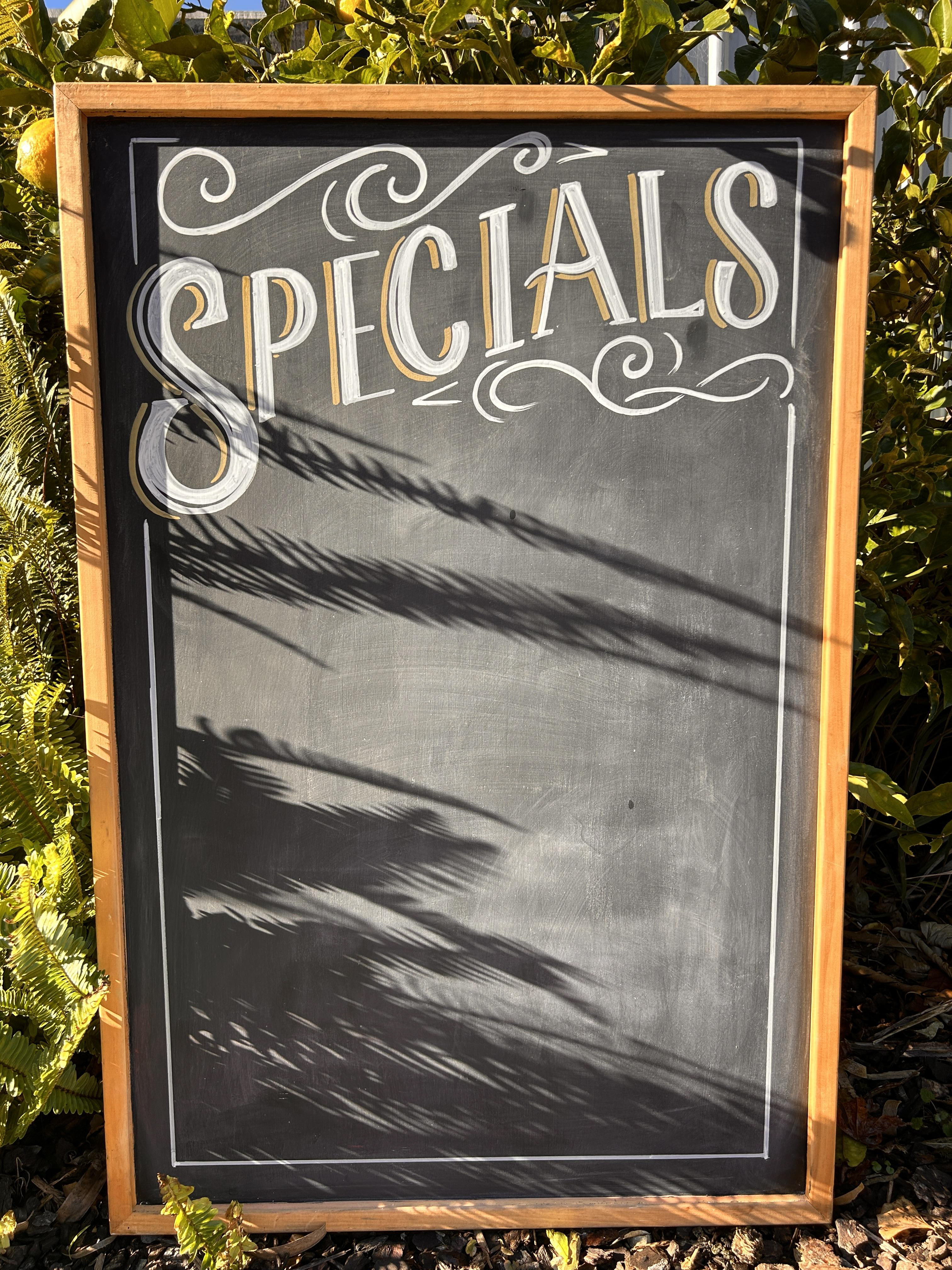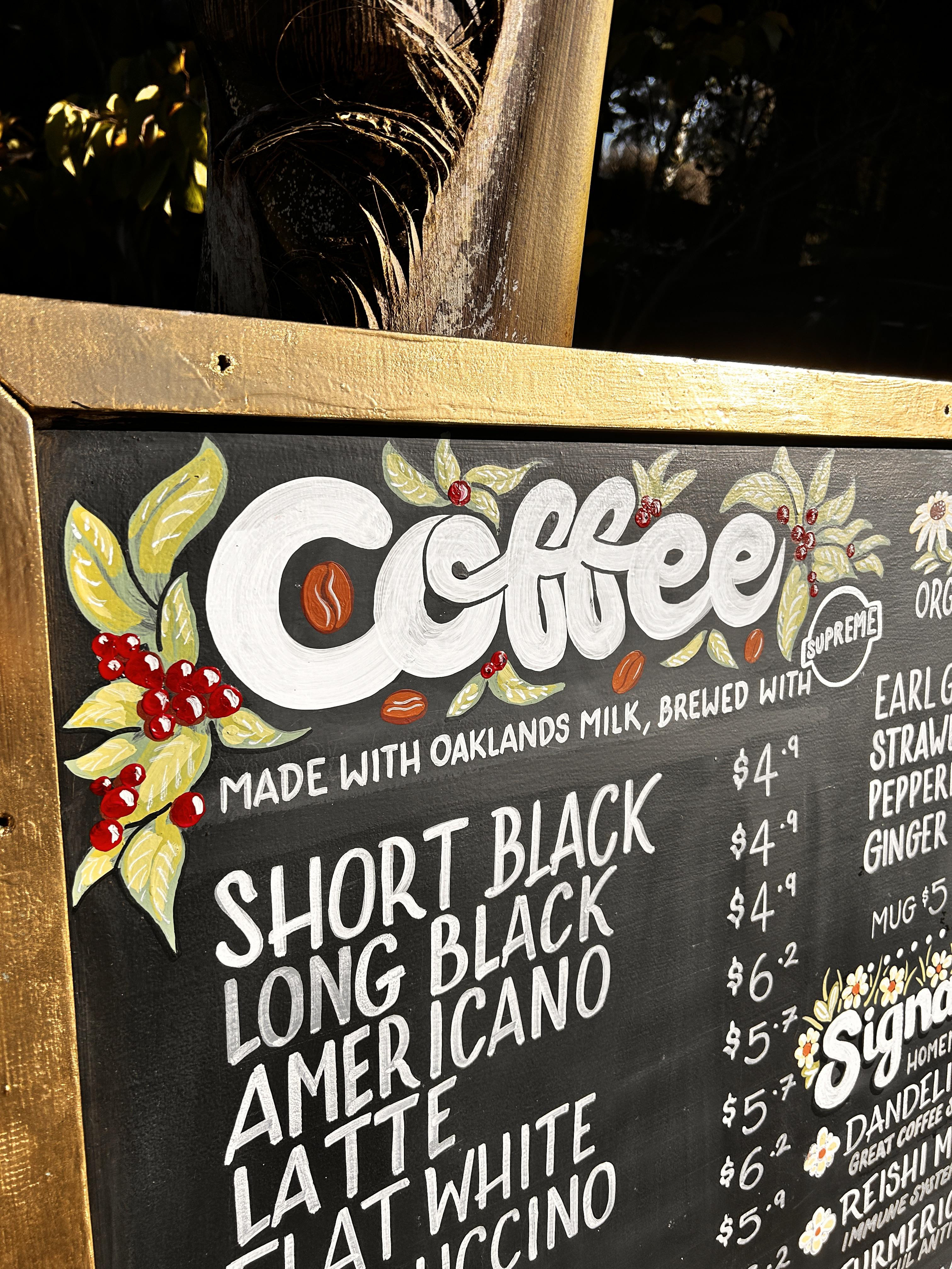 Hand lettered menu boards, easy to change for the seasons. A tidy and cohesive way to display your products. grocery signs, food & beverage menus or retail labelling services available.
